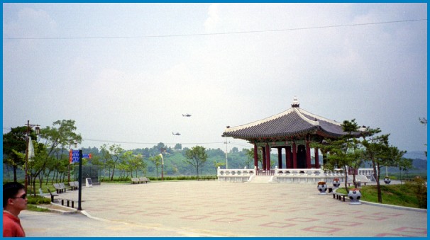 Some Apache helicopters flying overhead. Notice the soccer balls holding the plants in the bottom right hand corner. They were everywhere.