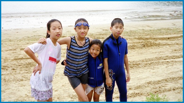 Second from the is yet another cousin's daughter, Ni-Hyun. And to the far right is the scuba school's owner's son.